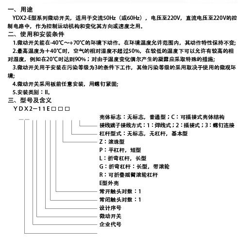 YDX2-E型系列微动开关