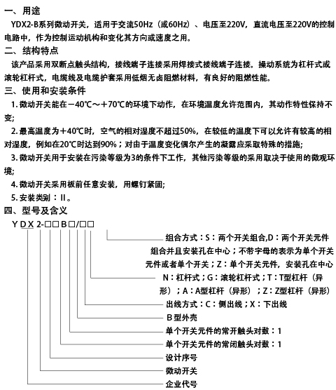 YDX2-B系列微动开关